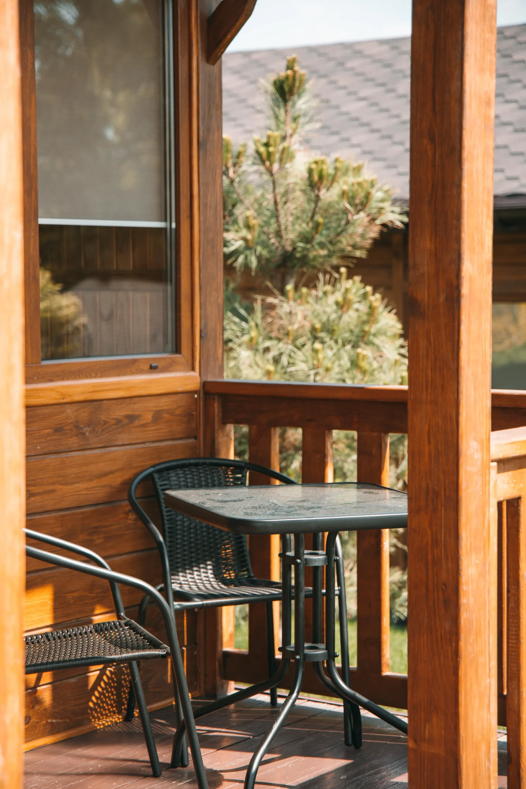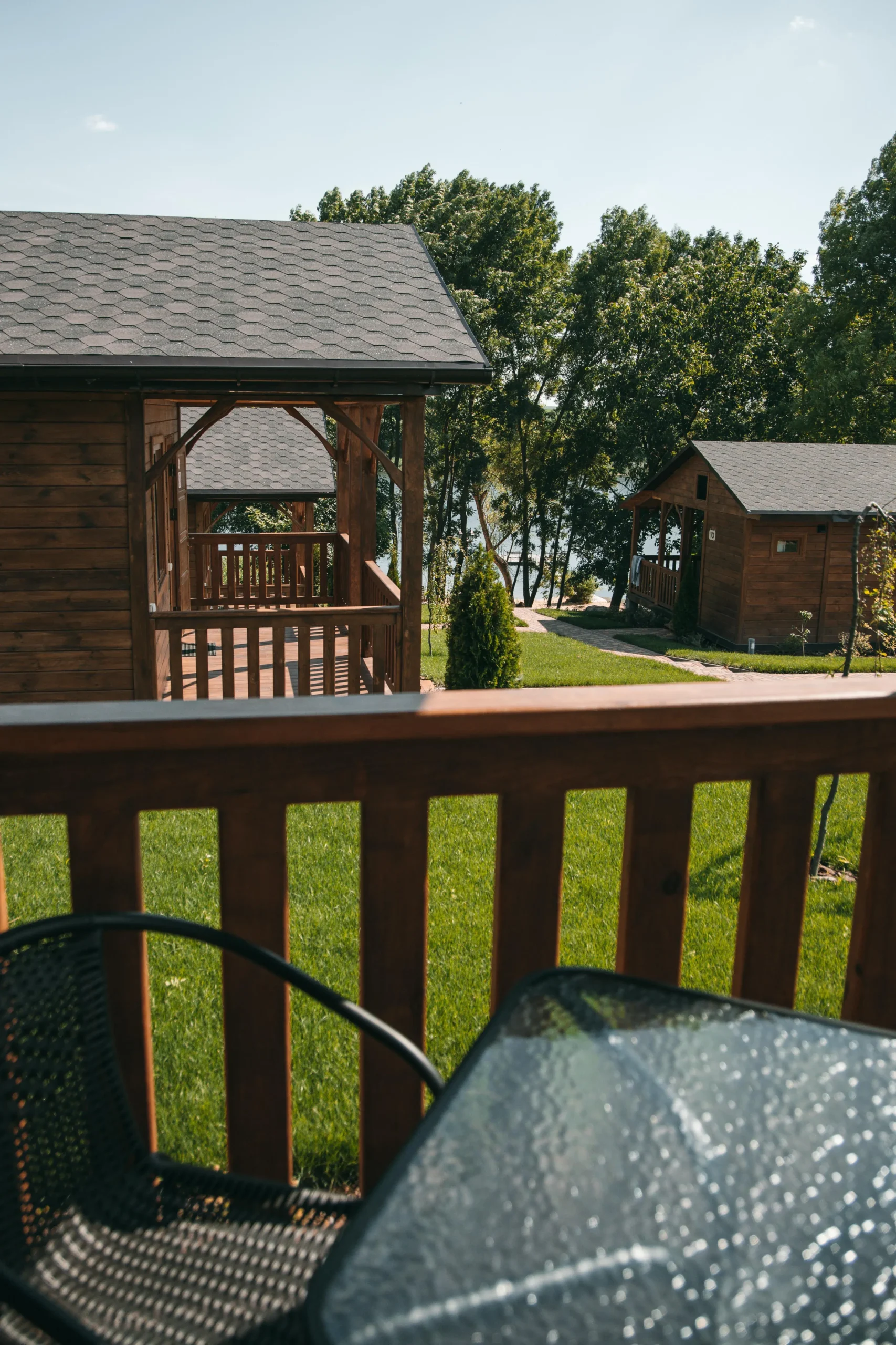Перед будинком — тераса зі столом та стільцями, де приємно снідати, читати або проводити вечори у тиші. Усе це — на території сучасного комплексу відпочинку, який поєднує комфорт міського житла з перевагами природи.